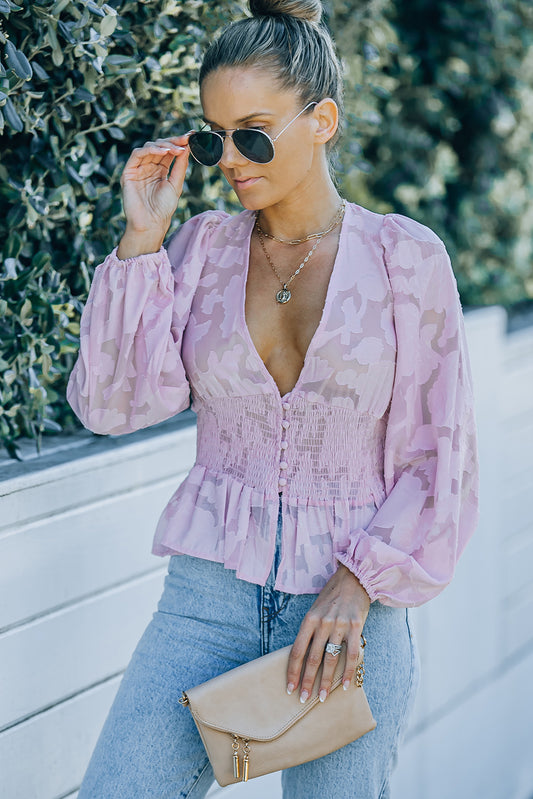 Pattern: Solid Features: Applique, smocked waist, button front Neckline: V-neck Product measurements: S: bust 39...