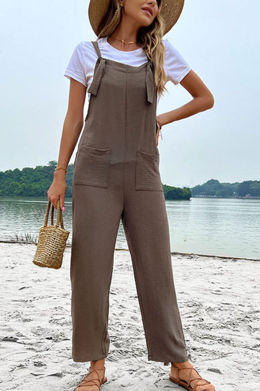 Pattern type: Solid Style: Chic Features: Smocked, Pockets Neckline: Straight Length: Short Sleeve length: Sleeveless...