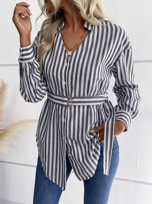 Sizing category: Regular Picture style: Studio Pattern type: Striped Style: Casual, chic Features: Belted Neckline:...
