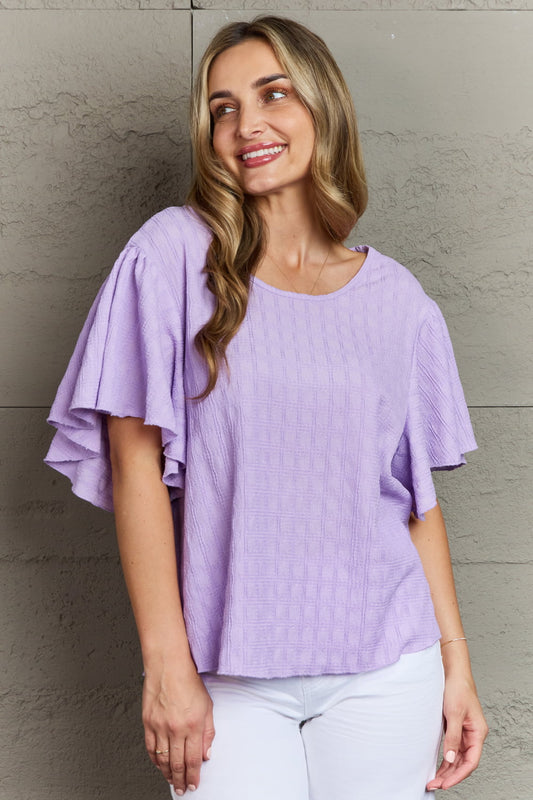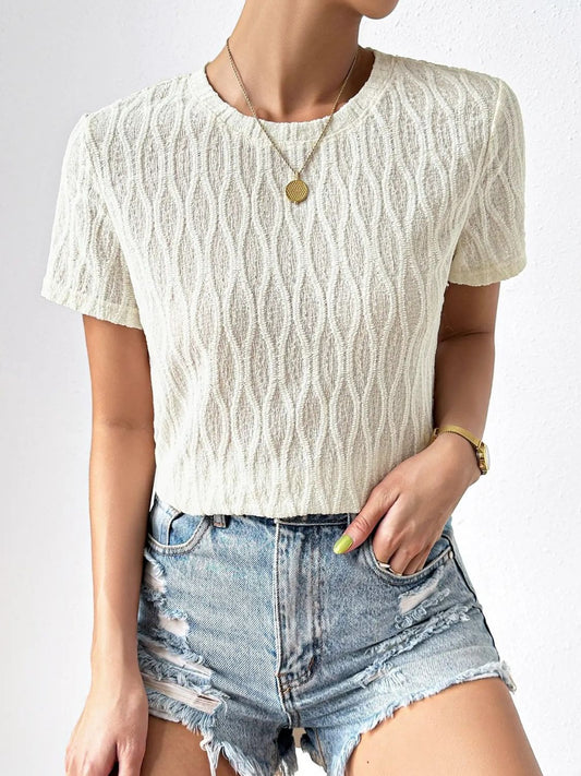 Pattern: Solid Features: Short sleeves, lace trim, textured Neckline: Scoop neck Product measurements: S: bust...