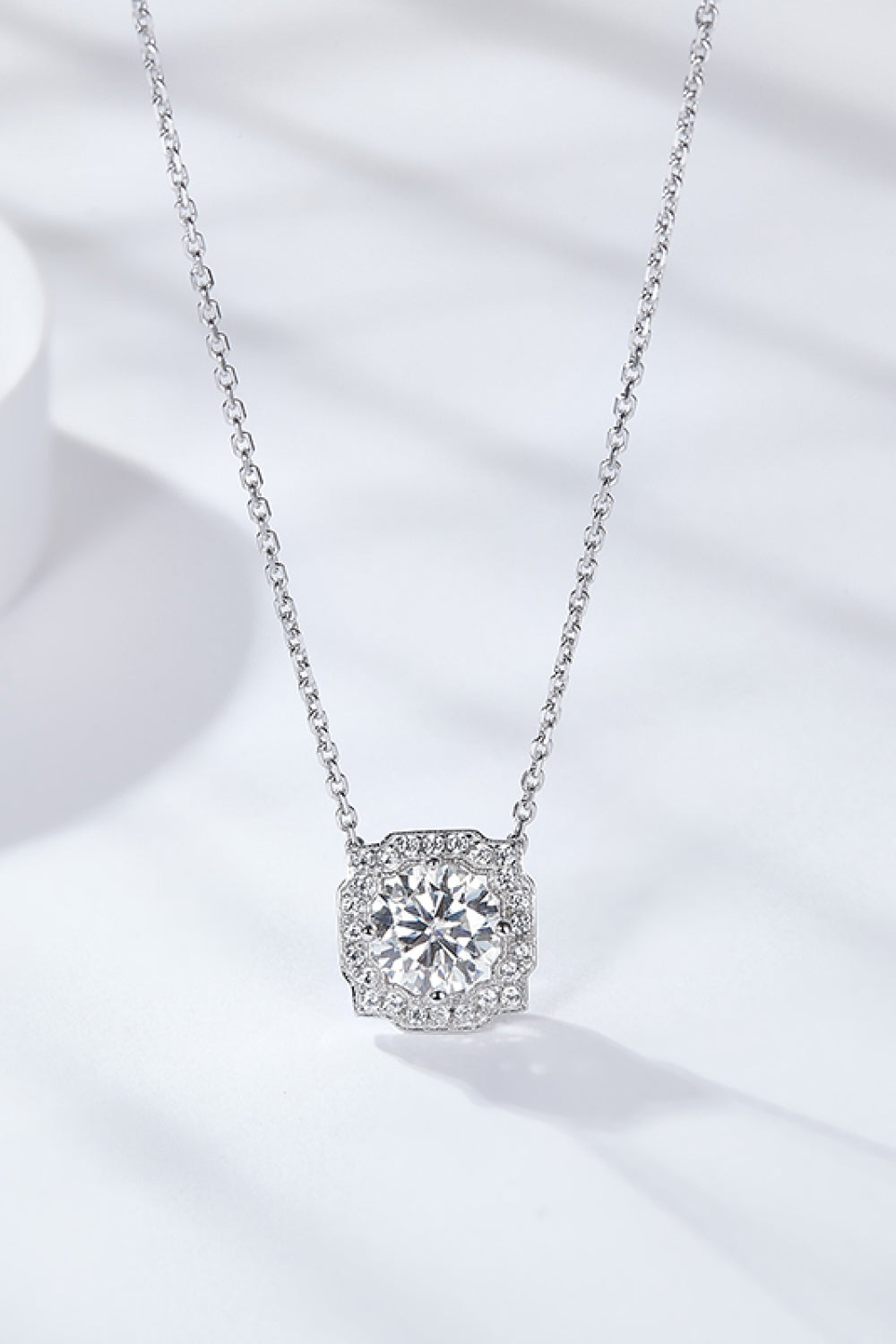 1 Carat Moissanite Flower Shape Pendant Chain Necklace