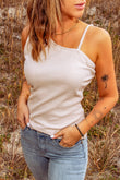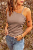 Asymmetrical Neck Sleeveless Waffle-Knit Tank