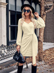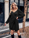 Asymmetrical Surplice Puff Sleeve Mini Dress