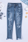 Baeful Distressed Frayed Hem Cropped Jeans