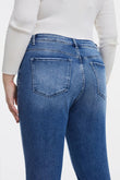 These high-waisted cropped straight-leg trousers are the epitome of modern chic. They feature unique whiskering and fading details, giving them a distinct and edgy look. The frayed hem adds a touch of casual cool, perfectly balancing sophistication with a hint of undone style. These trousers are versatile and can be paired with a crisp white blouse and heels for a polished office look, or dressed down with a graphic tee and sneakers for a more casual vibe. Effortlessly stylish, these trousers are a must-have for any fashion-forward wardrobe.