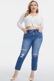 BAYEAS Full Size High Waist Distressed Cat's Whiskers Straight Jeans