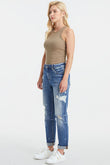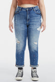 These high-waisted mom jeans are a perfect blend of vintage style and contemporary flair. The paint splatter pattern adds a playful and artistic touch, giving these jeans a distinct and trendy look. The irregular distressing adds a worn-in feel, while the rolled cuffs at the hem add a touch of casual charm. These jeans are a statement piece that can be dressed up with a blouse and heels for a fashionable ensemble, or dressed down with a graphic tee and sneakers for a more relaxed vibe. Embrace the retro vibes and rock these jeans with confidence for a stylish and effortlessly cool outfit.