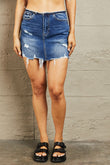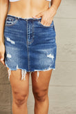 Embrace style and comfort with this trendy skirt, crafted from premium denim that hugs your curves just right. The high-waisted design cinches your waist, creating a flattering silhouette, while the distressed details add an edgy touch. Perfect for any casual occasion, this versatile mini skirt pairs effortlessly with your favorite tees, tanks, and blouses for a chic and effortless look that will turn heads wherever you go. Elevate your wardrobe with this essential denim piece that combines fashion-forward elements with timeless appeal.