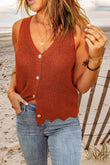 - Features: Buttoned, scalloped hem, sleeveless, ribbed, cropped