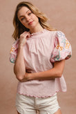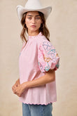 BiBi Embroidery Bubble Sleeve Top With Bottom Scallop Detail