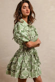 BiBi Tied Floral Short Sleeve Mini Shirt Dress