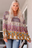 Bohemian Long Flounce Sleeve V-Neck Blouse