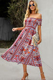 Bohemian Off-Shoulder Frill Trim Split Dress