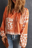 Bohemian Tie-Neck Balloon Sleeve Blouse