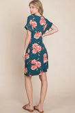 BOMBOM Floral Round Neck Short Tee Dress with Pockets