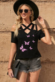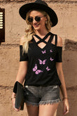 Butterfly Graphic Strappy Cold-Shoulder Top