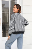 Button-Down Stripe & Plaid Contrast Pattern Cardigan