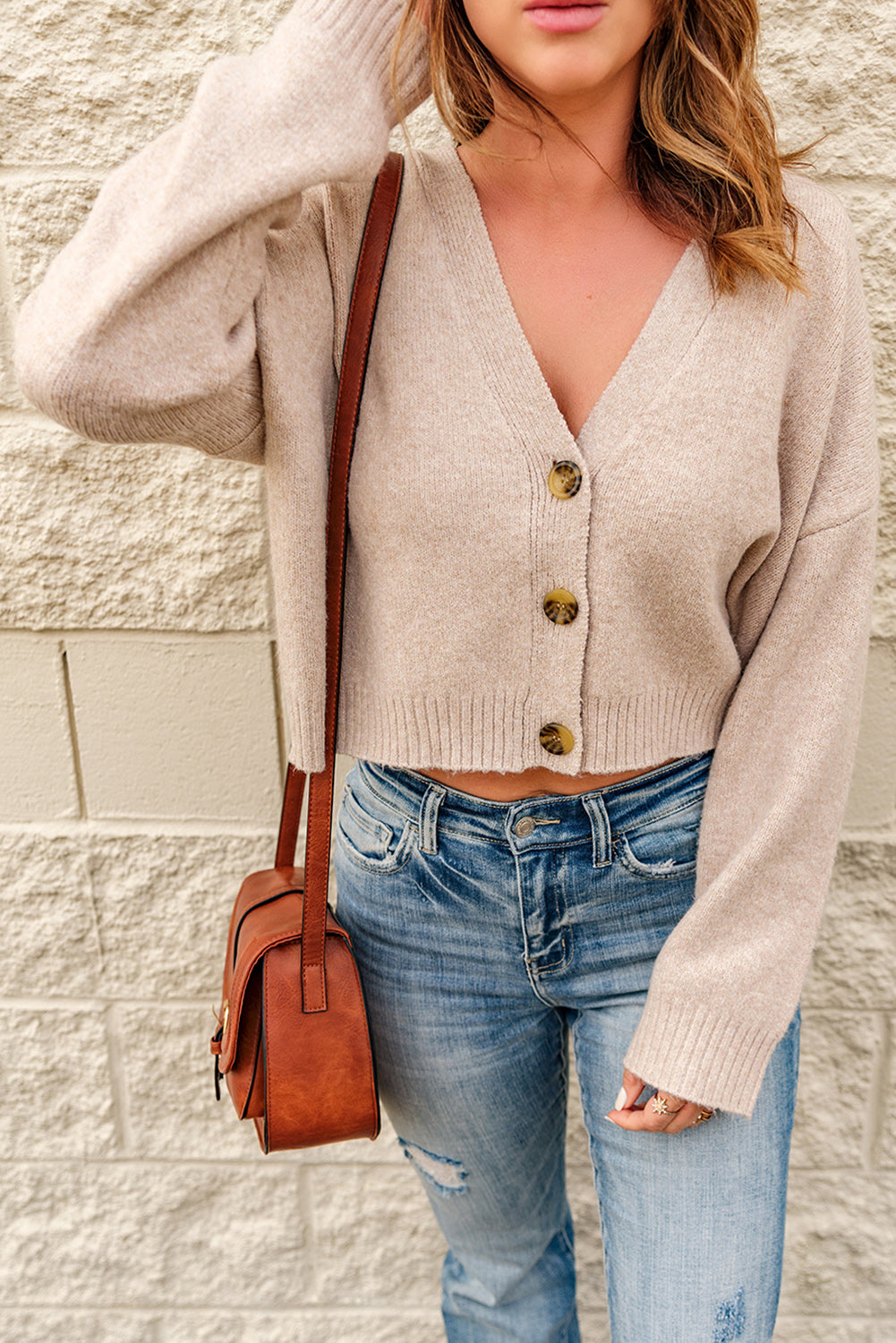 This cropped cardigan features a classic button-down design, ribbed trim, and dropped shoulders for a chic look that goes great with jeans.