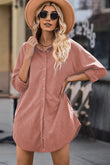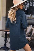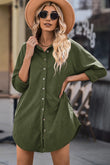 Button Front Curved Hem Raglan Sleeve Shirt Dress