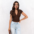 L: front length 19.5 in, shoulder 13.8 in, bust 34.7-42 in, sleeve length 6 in