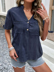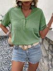 Buttoned Notched Neck Cuffed Sleeve Blouse
