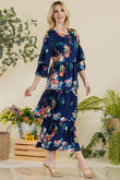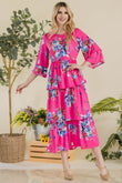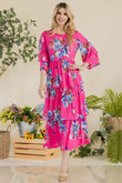 Celeste Full Size Floral Ruffle Tiered Midi Dress