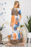 Celeste Full Size Leopard Tie-Dye Button Detail Short Sleeve Maxi Dress Plus Size
