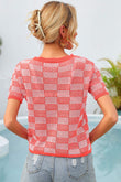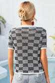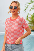 Checkered Short Sleeve Knit Top