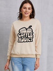 COFFEE ADDICT Round Neck Dropped Shoulder Sweatshirt