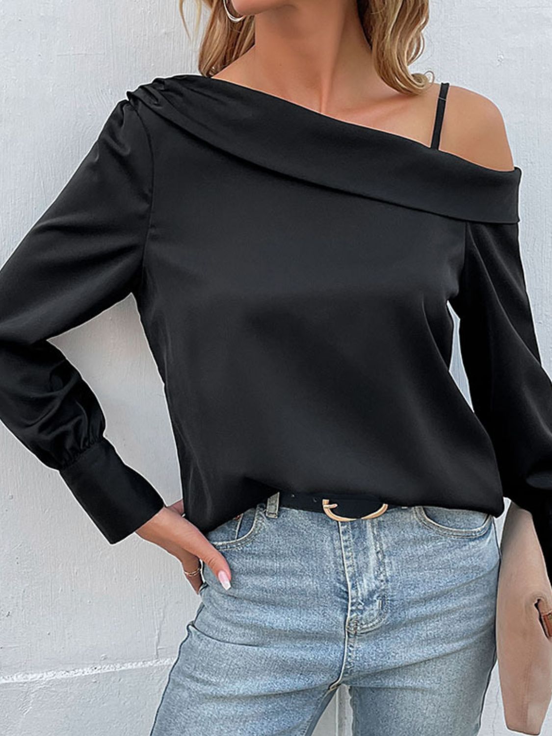 - Neckline: Asymmetric neck