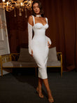 Cold-Shoulder Mesh Sleeve Slit Back Bodycon Dress
