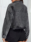 Collared Neck Dropped Shoulder Button-Down Denim Jacket