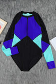 Color Block Half Zip Long Sleeve One-Piece Swimsuit