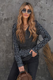 Color Block Leopard Long Sleeve Hoodie