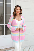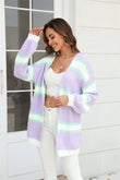 Color Block Ribbed Dropped Shoulder Open Front Cardigan
