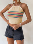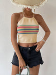 Contrast Halter Neck Lace-Up Cami