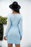- Features: Long sleeve, puff sleeve, wrap front, ruched, asymmetry hem