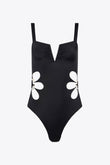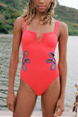Contrast Trim Cutout Notched Neck One-Piece Swimsuit