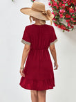 Contrast V-Neck Short Sleeve Mini Dress