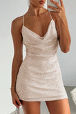 Cowl Neck Contrast Sequin Sleeveless Mini Dress