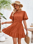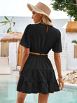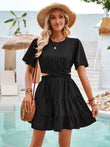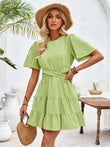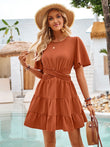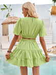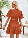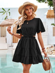Crisscross Round Neck Flutter Sleeve Mini Dress