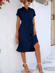 A versatile dress that makes you look as charming as you feel. Crafted with a cuffed short sleeve blouse and belt, this style is perfect for understated chic with an easy fit.