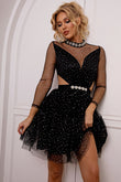 Cutout Mock Neck Mesh Dress