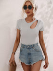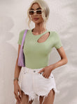 Cutout Round Neck Short Sleeve Knit Top