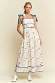 Davi & Dani Denim Binding Detail Smocking Summer Maxi Dress