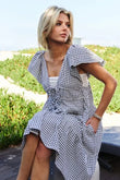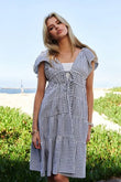 The Jacquard V-neck flutter cap sleeve tiered dress is an elegant and feminine garment featuring a V-neckline, flutter cap sleeves, and tiered design. The jacquard fabric adds texture and refined detail to the dress, while the tiered silhouette creates a flowy and flattering look. This dress is perfect for special occasions or events where you want to make a stylish and sophisticated statement.