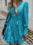 Devine Ruffled Printed Surplice Long Sleeve Mini Dress