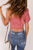 Ditsy Floral Ruffled One-Shoulder Smocked Top