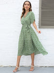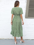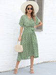 Ditsy Floral Tie-Waist Short Sleeve V-Neck Dress