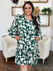 Double Take Full Size Printed Ruffle Hem Dress with Pocket